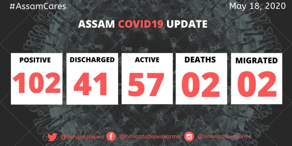• With 2 more cases, Assam has reported 102 confirmed cases of COVID-19.