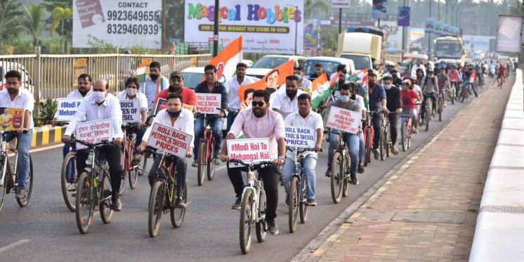 Fuel price hike: Congress legislators hold protest, ride bicycles to the state assembly