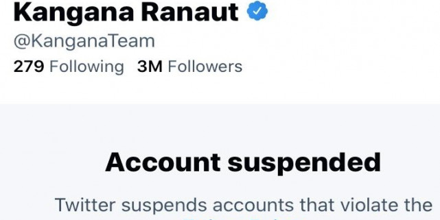 • After posting multiple tweets on Bengal violence, Twitter has suspended Bollywood actress Kangana Ranaut's account.