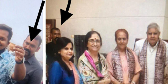 - एक तस्वीर कोलकाता वैक्सीन जालसाज देबंजन देब और उनके पीछे खड़े उनके बॉडीगार्ड की है। दूसरी तस्वीर में बॉडीगार्ड कोलकाता राजभवन में खड़ा दिख रहा।