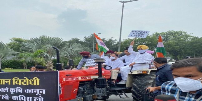 Rahul Gandhi reaches Parliament by driving tractor, Congress protests against new agricultural laws