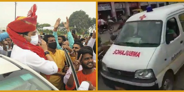सिंधिया के यात्रा में फंसी एम्बुलेंस तो कांग्रेस बोली- सौदेबाज नेता को ऐंबुलेंस भी नहीं दिख रही, शर्म करो