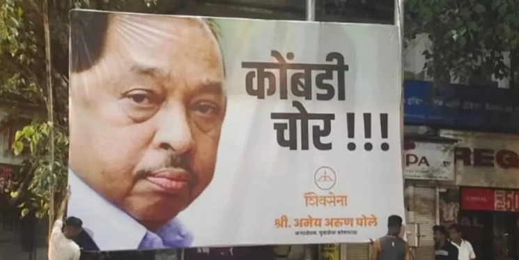 'उद्धव को थप्पड़ मारता' बयान पर भड़के शिवसैनिक, राणे के घर घेरा, लगाए मुर्गी चोर के पोस्टर
