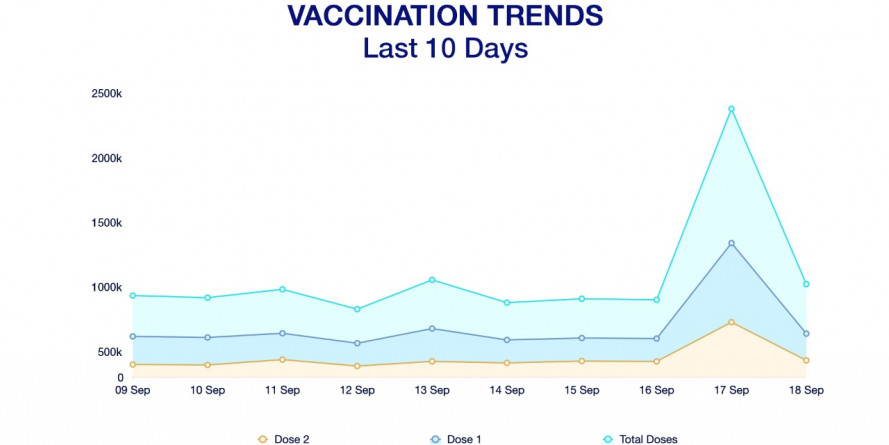 - On September 17, 25 million people were vaccinated in the country, which is the record for the highest number of vaccinations done in a single day so far.