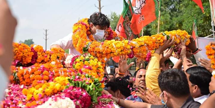 - A video of Jyotiraditya Scindia is being widely shared on social media. In this video, he is seen taking off his mask in the crowd.
