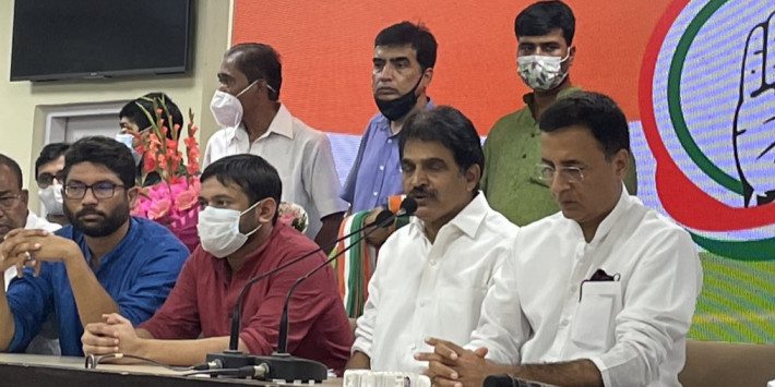 - Dalit Congress President Nitin Raut welcomed independent MLA Jignesh Mevani to the party by wearing a cloak of Congress party.