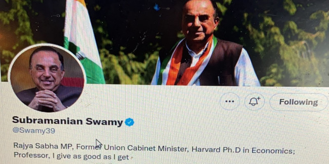 Subramanian Swamy changes his Twitter bio after being removed from National Executive
