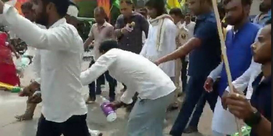 - A video of Tej Pratap is going viral on social media in which his supporters are seen pouring mineral water ahead.