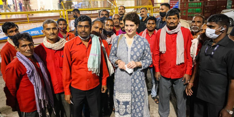 - Congress leader Priyanka Gandhi met porters at Charbagh railway station in Lucknow.