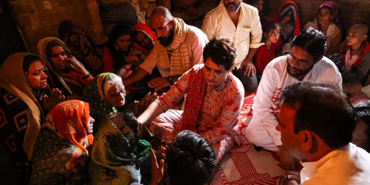 यूपी: ट्रेन से ललितपुर पहुंची प्रियंका गांधी, मृतक किसान के परिवार से मिलीं