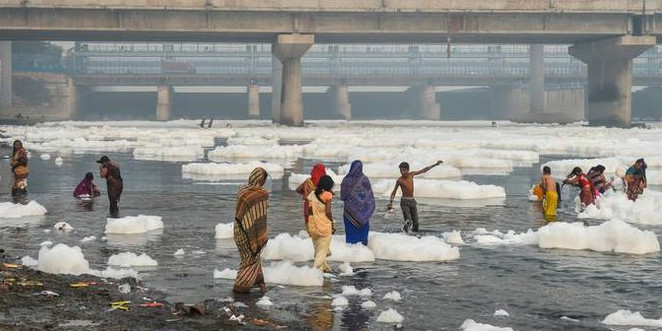छठ पूजा पर लगाई जहरीले झाग में डुबकी, यमुना में छोड़ा जाता है कचरा समेत विषेला सीवेज का पानी
