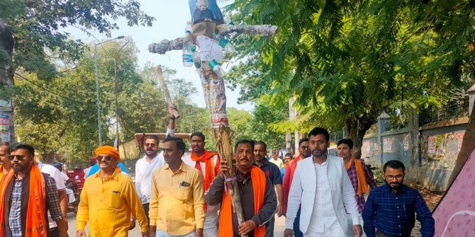 - राम इकबाल की तीन दवाई जैसे जूता, चप्पल और पिटाई का नारा के साथ पुतला फूंका गया, वही बलिया में कही लाठी डंडे से पीट- पीटकर पुतला फूंका गया।