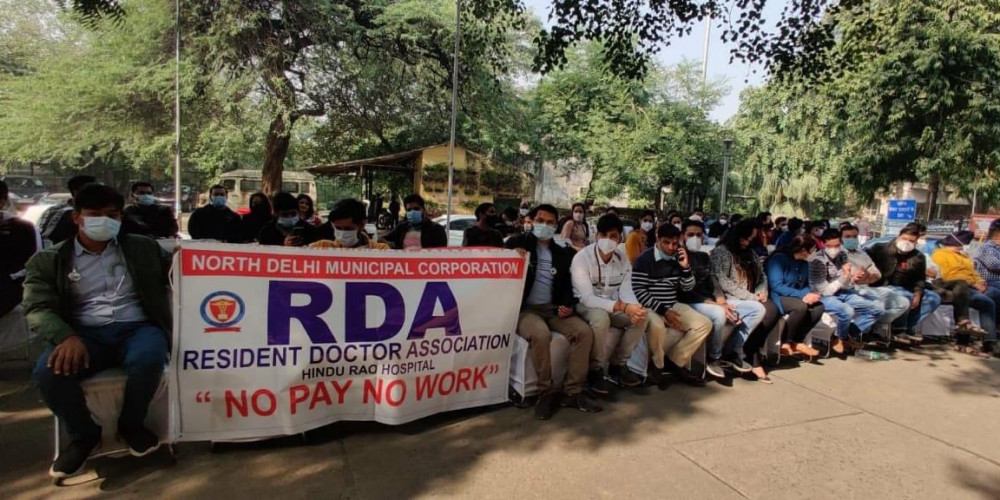 Delhi- Doctors, nurses of Hindu Rao Hospital protest for the non-payment of salaries