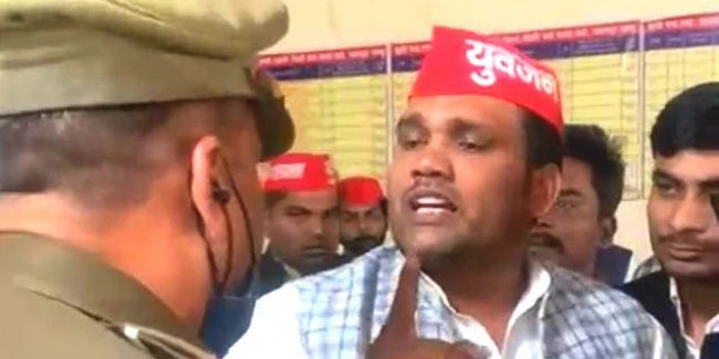 - In the video, the SP councillor Arpit Yadav is seen threatening a cop.