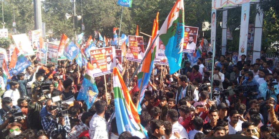 - During the mega protest, the students clashed with the police. Around 2500-3000 students from all 52 districts of the state are participating in the protest.