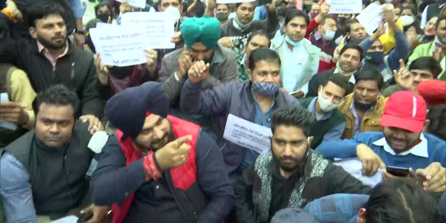 Navjot Singh Sidhu stages protest with guest teachers outside Kejriwal's residence