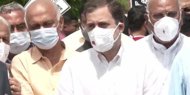 कांग्रेस नेता राहुल गांधी भी विपक्ष द्वारा आयोजित विजय चौक मार्च में शामिल हुए और इस दौरान मिडिया से भी वार्ता भी की गई।