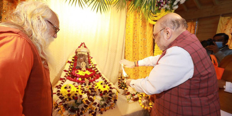 - अयोध्या में अमित शाह ने हनुमानगढ़ तथा रामलला का दर्शन किए और पूजन करने के बाद श्रीराम जन्मभूमि तीर्थ क्षेत्र के अध्यक्ष महंत नृत्य गोपाल दास से मुलाक़ात की।
